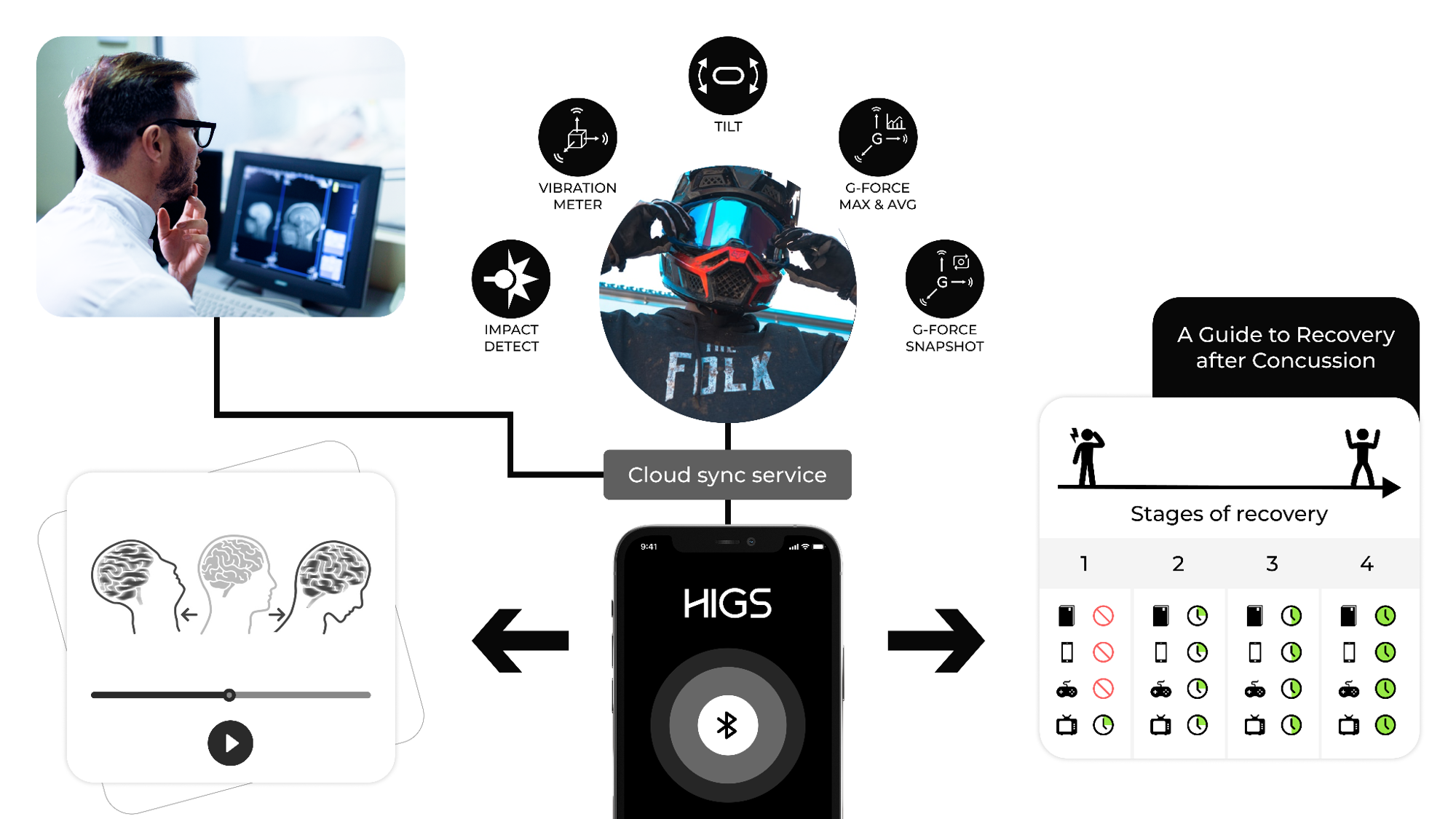 – a helmet integrated solution measuring forces, angulation and rotation. The proprietary AI module measures the difference between helmet and head rotation. And can visualize the crash to understand the relationship between helmet trauma and head injuries.